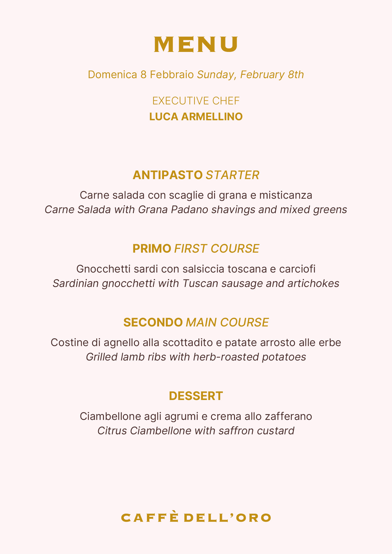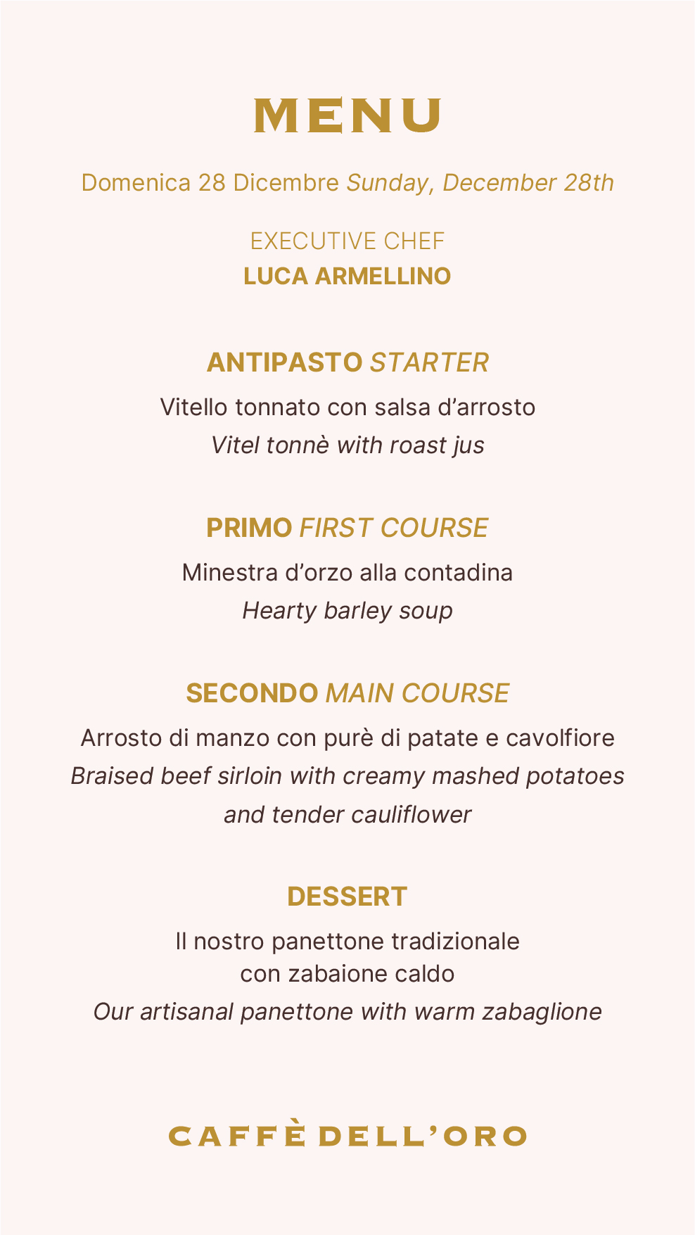 Buona Domenica celebrates the authentic flavours of Italian tradition with a weekly menu created by Executive Chef Luca Armellino.