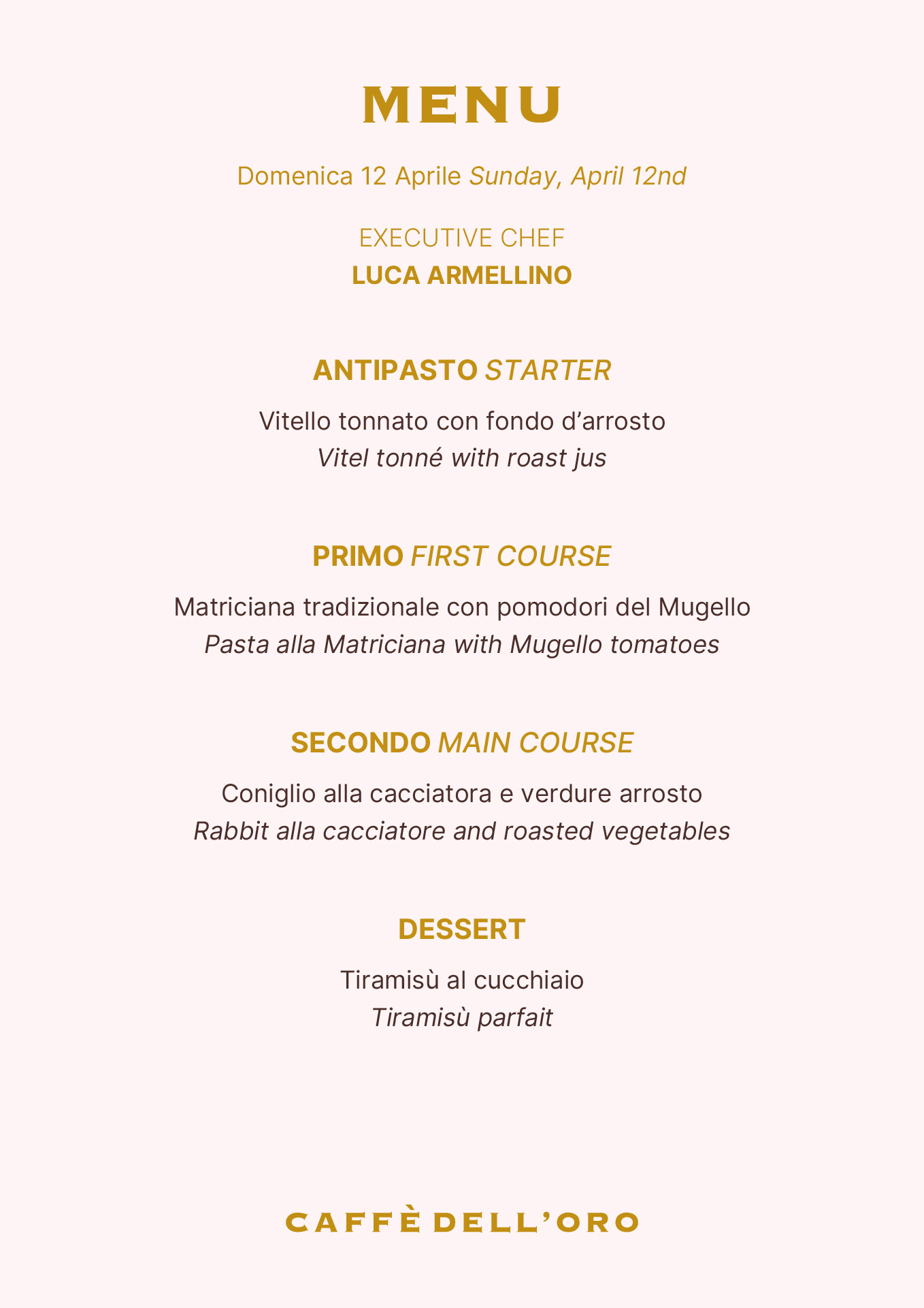 Buona Domenica celebrates the authentic flavours of Italian tradition with a weekly menu created by Executive Chef Luca Armellino.
