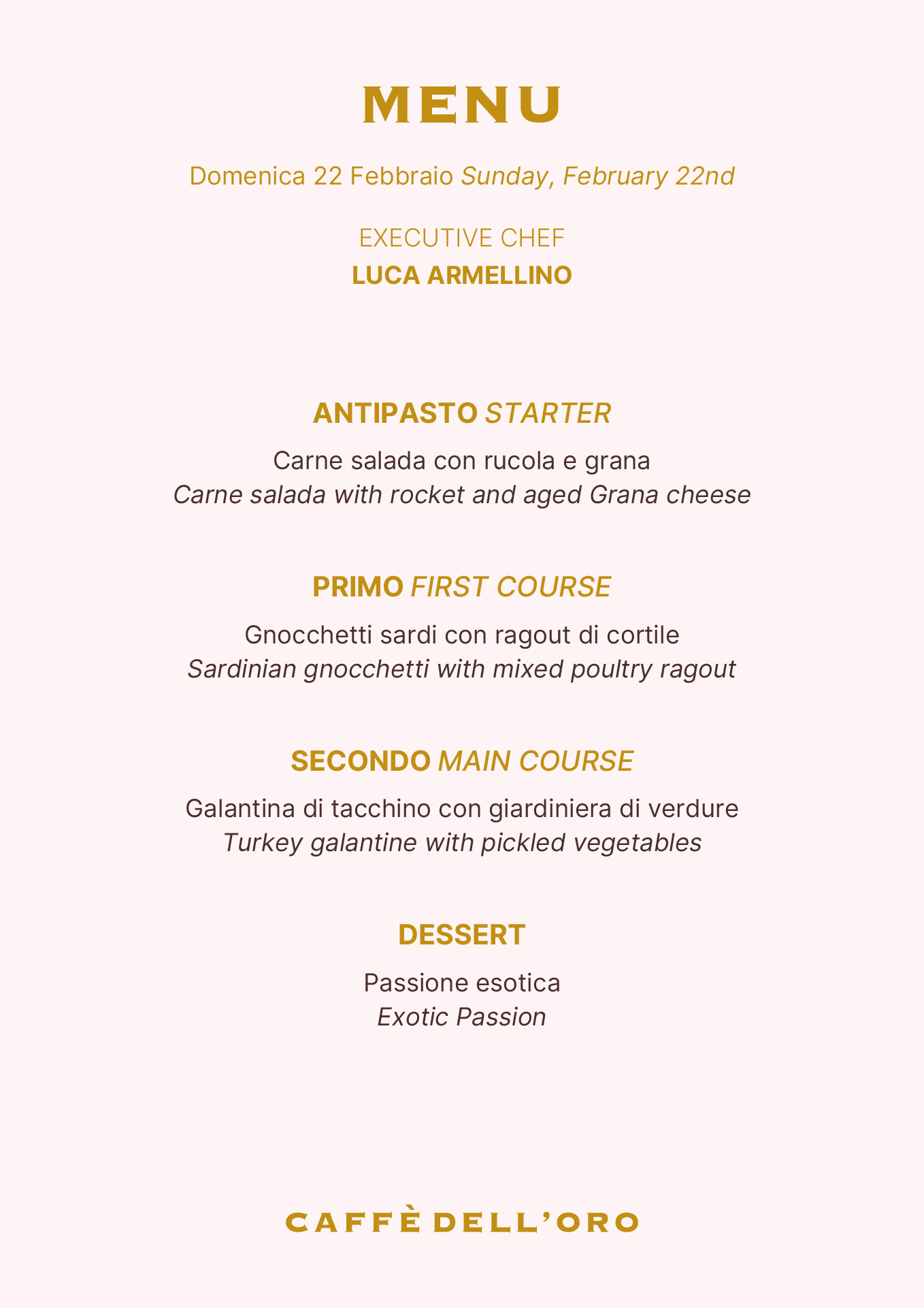 Buona Domenica celebrates the authentic flavours of Italian tradition with a weekly menu created by Executive Chef Luca Armellino.